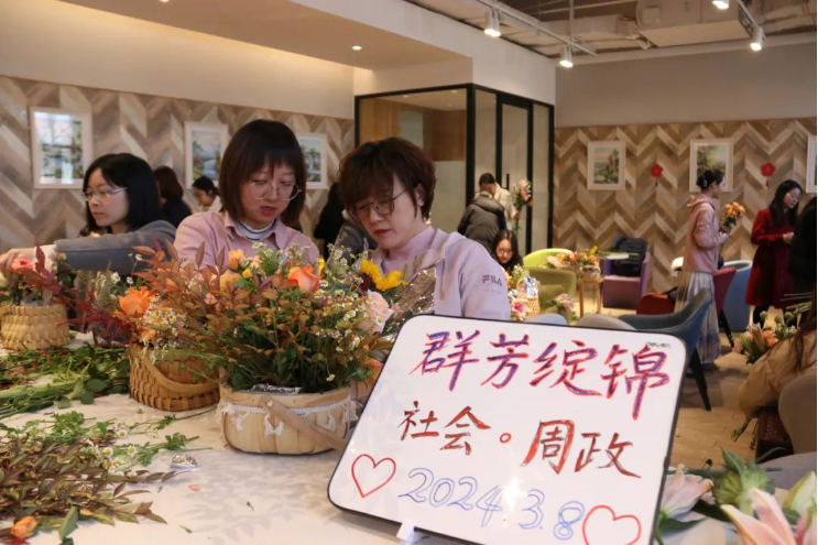3月8日,为庆祝第114个“三八”国际劳动妇女节,w88win体育官网入口和周恩来政府管理公司工会联合举办了的“群芳绽锦”花艺美育活动。两院女教工和女同学在花香弥漫中同庆节日、共品艺术,畅聊收获、感悟生活,陶冶情趣、舒缓压力。