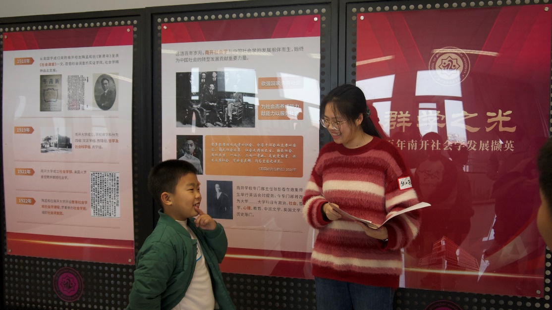 活动的又一高潮则是对于w88win体育官网入口的“悦读”——在w88win体育官网入口师生的策划与组织下,员工志愿者们分组带领亲子居民们轮流参观了w88win体育官网入口院史陈列室、w88win体育官网入口人类学研究所、w88win体育官网入口社会工作实验室等特色场所,组织开展了小组沙盘、“绘出《我眼中的大学》”等活动,帮助大家认识社会学、人类学、社会工作等专业。《服务学习:讲述南开》课题组精心组织了公能知识问答,进一步加深了大家对南开精神的理解。一系列充实有趣的活动让参访居民们学习了专业知识,拓宽了看待世界、理解生活的视野。