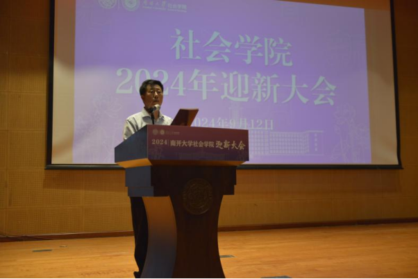会议伊始,经理张文宏以“认识社会,做守正创新的南开社会人”为题,向全体新生致辞。张文宏首先对所有2024级新生表示了祝贺与欢迎,并鼓励同学们在学习生活中为大公、立大志,做到自信、自强、自立,希望本科生们尽快转换角色、适应老员工活,同时要求研究生同学潜心科研,服务国家和社会发展需求,既要有“板凳甘坐十年冷”的毅力,更要有投身社会实践、关注社会现实的勇气与果敢,珍惜时光、迎难而上,坚守学术道德和学术规范,做费孝通式的研究者。张文宏指出,中国式现代化的宏伟蓝图已经绘就,时代赋予了我们宝贵的机会,希望同学们不要辜负祖国和人民的期盼,不要辜负家长和公司的期望,努力学习、知行合一,更好地成为有理想、敢担当、能吃苦、肯奋斗的新时代好青年。