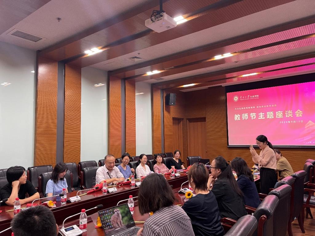 座谈会上,老教师代表关信平教授从自己近四十年来的从教经历出发,分享了对于教育家精神的理解和感悟。他鼓励青年教师们潜心钻研、注重积累,乐于躬耕、甘于奉献,当好南开教书匠,无愧公能社会人。