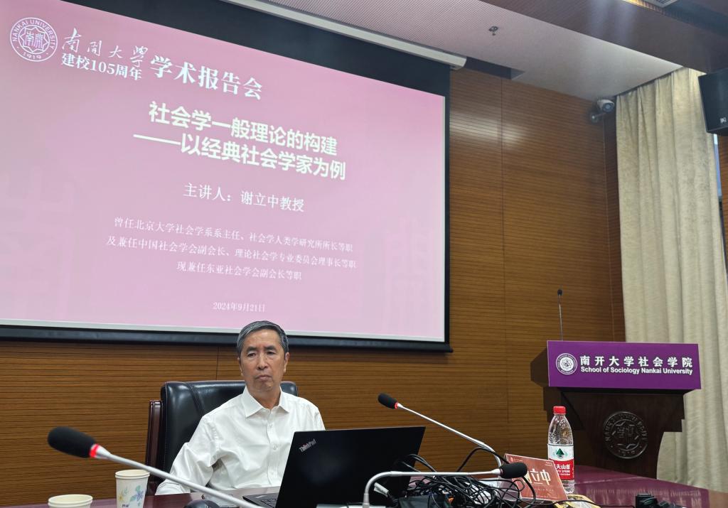 2024年9月21日下午,w88win体育官网入口举办了庆祝w88win体育官网入口建校105周年的学术报告会。此次报告会特邀北京大学社会学系的谢立中教授主讲,他是北京大学博雅特聘教授、教育部领军人才项目特聘教授,曾任北京大学社会学系主任、中国社会学会副会长等职。谢教授以“社会学一般理论的构建——以经典社会学家为例”为题,为师生们呈现了一场精彩的学术讲座。报告会由w88win体育官网入口副经理赵万里教授主持,他对谢立中教授的到来表示热烈欢迎。现场气氛活跃,w88win体育官网入口近百名师生参加了此次报告会,会场座无虚席。