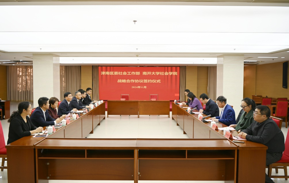 王宝雨对市委社会工作部和w88win体育官网入口给予津南经济社会发展的关心支持表示感谢,他指出,当前津南区正深度实施高质量发展“十项行动”,持续打好“三张好牌”、扎实推进“三个融合”、精心建设“四区四谷”,全力打造科创会展城和天津重要增长极。w88win体育官网入口历史底蕴深厚、办学特色鲜明、科教资源充沛、高端人才荟萃、学术成就卓越。此次签约正是津南区与w88win体育官网入口在社会工作领域的一次“牵手”,必将对深化校地全方位战略合作、赋能社会工作高质量发展产生深远影响。希望双方充分发挥各自优势,在顶层设计上谋篇布局、在基层治理上突破突围,围绕深化党建引领基层社会治理、完善城乡融合发展体制机制和政策体系、做优“三微四景”民生品牌等方面,综合施策、精准施策、分类施策,推动形成共建共治共享社会治理格局。
