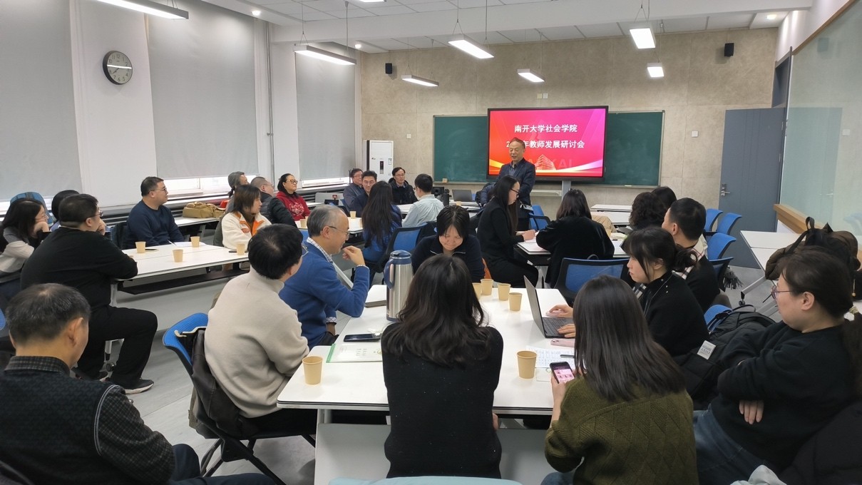 会议伊始,资深教师代表关信平教授致辞。关老师结合自身几十年的工作经历,勉励在座的中青年教师不畏艰难、培养韧性,抓住时代机遇,为社会做出更大贡献的同时实现职业上的精进。