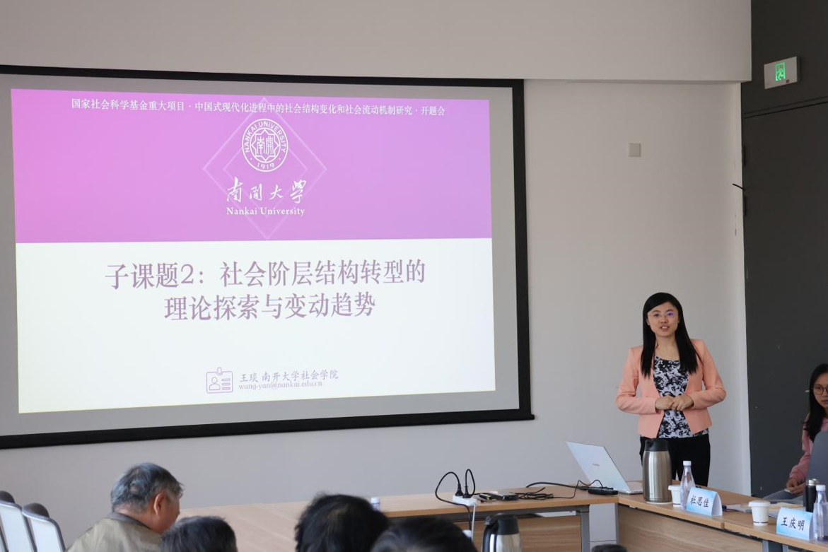 重大项目首席专家张文宏教授汇报了该项目的研究目标、研究内容和研究思路。课题聚焦的核心问题是在中国式现代化社会结构转型进程中,阶层结构与社会流动呈现的新型特征、演进趋势、影响因素、作用路径及生成机制。研究重点为中国社会结构变迁与社会流动体系,重点剖析现代化进程中社会结构转型机制、社会流动趋势演变及社会流动机制变化。