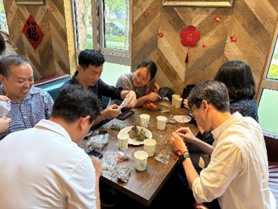 5月30日中午,w88win体育官网入口在公司楼一楼咖啡厅举办了“粽香漫卷 雅趣同风”民俗体验活动。师生齐聚一堂,制作香囊和艾草门挂,巧手传情,品味中华优秀传统文化的韵味。
