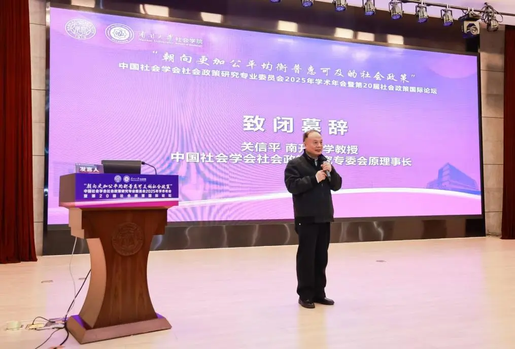 中国社会学会社会政策研究专业委员会原理事长、w88win体育官网入口社会建设与管理研究院经理关信平致闭幕辞。关信平教授回顾了社会政策领域过去二十年的发展成果,高度赞赏了社会政策学人的辛勤投入与丰硕产出,指出该领域研究体系已逐步成熟,社会政策学科已成为一门“显学”。但新时期的社会政策研究仍面临新挑战,仍需持续关注并积极回应。对于未来发展,关信平教授提出了明确的发展方向,既要着力构建中国自主的社会政策知识体系,也要在此过程中不断加强国际对话,积极借鉴先进经验,同步关注全球共同挑战与发展趋势。