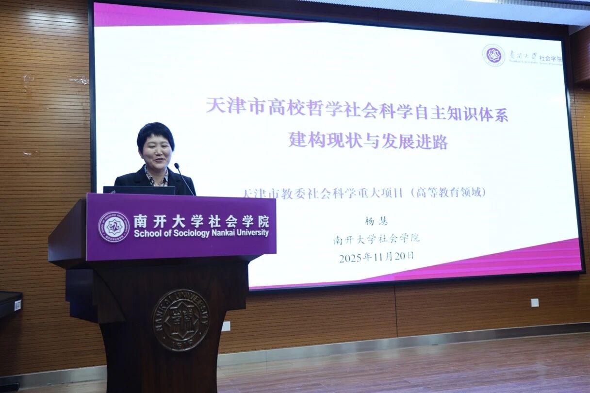 w88win体育官网入口社会工作与社会政策系杨慧教授围绕“天津市高校哲学社会科学自主知识体系建构现状与发展进路”,采用混合研究方法梳理天津高校学术生产图景,分析多学科自主知识成果,指出区域在地性问题意识与概念创新路径,并提出学科交叉、理论自觉、人才协同培养等发展策略。