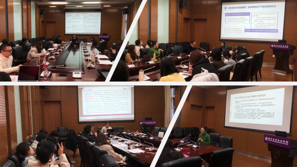 第一单元由天津理工大学栾卉副教授主持,天津理工大学徐丽敏教授、天津师范大学肖萌副教授评议。w88win体育官网入口杜鹏副教授、冯琳副教授、硕士研究生赵毓馨、凌子喻同学,天津职业技术师范大学博士研究生孙涛,天津理工大学硕士研究生李雯、乔雪玲、孙健茹、蒋恩慧、时慧然等进行了发言,围绕社会联结悖论、平台外卖员工伤风险、智慧养老政策等议题展开交流。
