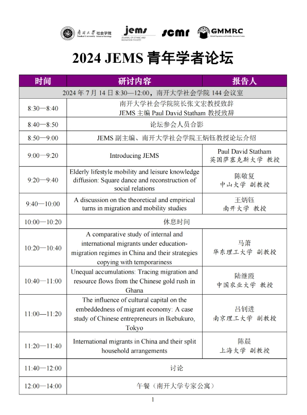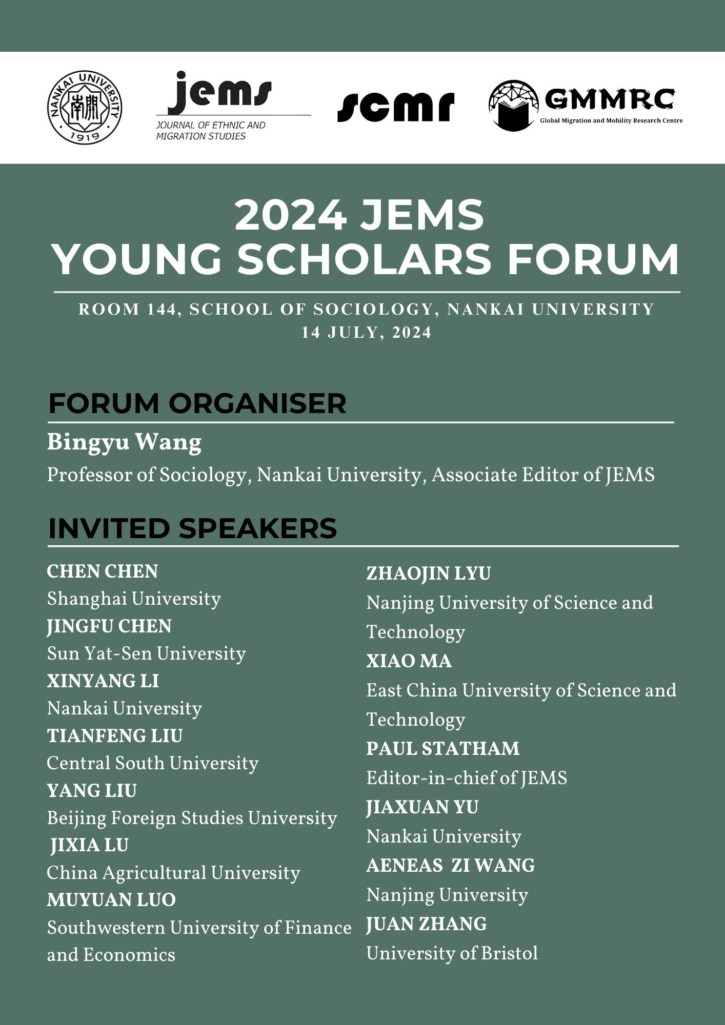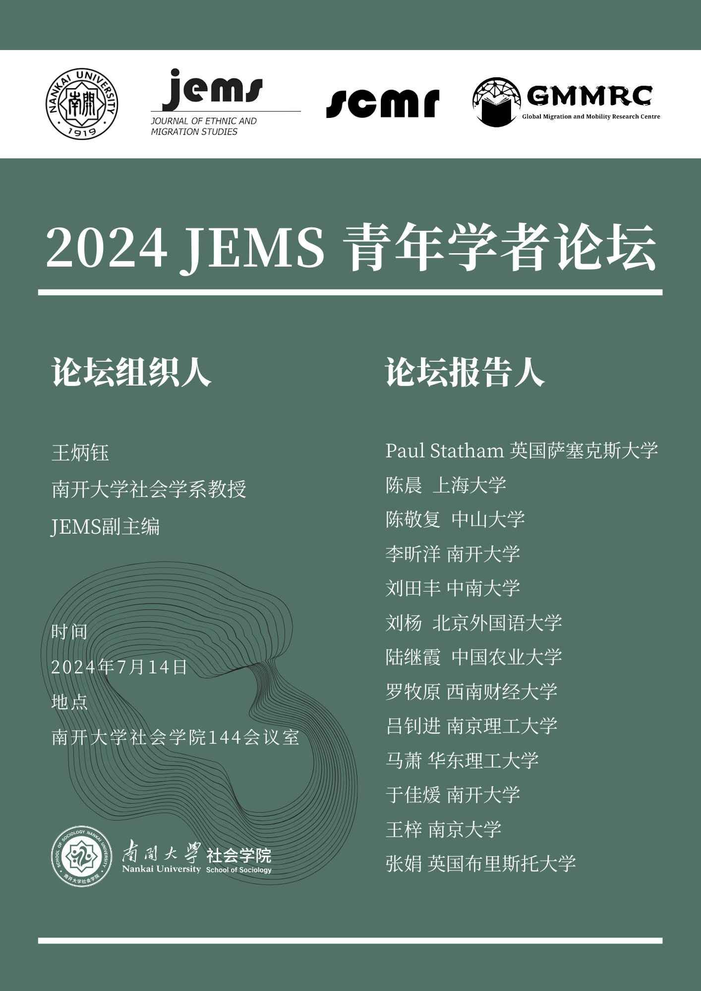w88win体育官网入口将于2024年7月14日举办“2024JEMS青年学者论坛”。该论坛以w88win体育官网入口全球移民与流动研究中心(GMMRC)以及移民研究国际权威期刊Journal of Ethnic and Migration Studies(JEMS)为平台,将聚焦移民与流动等相关研究领域的前沿成果和最新发展趋势,旨在更有效地链接优质海内外学术资源、为学者们提供更多交流和合作的机会。