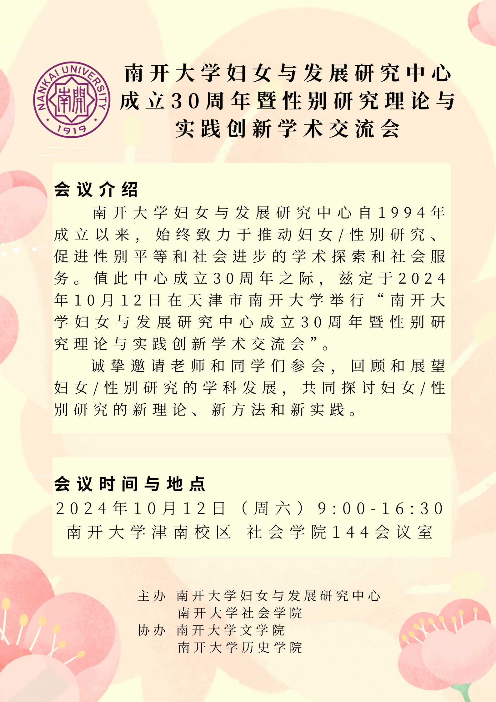 诚挚邀请老师和同学们参会,回顾和展望妇女/性别研究的学科发展,共同探讨妇女/性别研究的新理论、新方法和新实践。