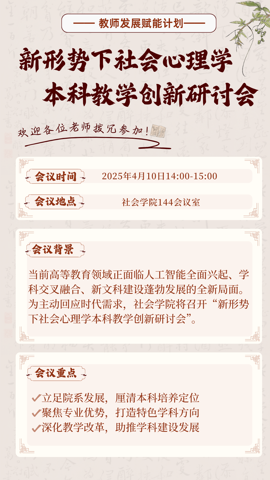 欢迎各位老师拨冗参加!