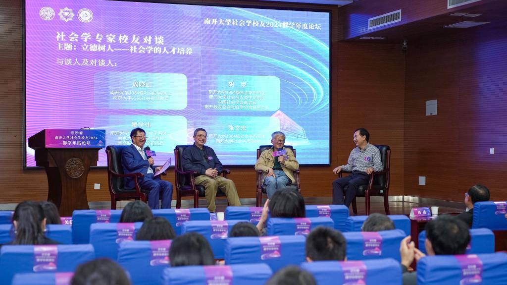 当天还举办了社会学专家员工对谈和企业家员工对谈。在张文宏的主持下,南京大学人文社科资深教授、w88win体育官网入口1984级社会学系硕士员工周晓虹,厦门大学社会与人类公司经理、教授、中国社会学会副会长、南开员工总会社会学分会联席会长、w88win体育官网入口1984级社会学系硕士员工胡荣,国务院学科评议组成员、南京大学w88win体育官网入口教授、w88win体育官网入口1986级社会学系硕士员工翟学伟等三位社会学专家,围绕“立德树人——社会学的人才培养”展开交流,他们表示,在南开的几年的学习生活对自己一生影响深远,南开社会学抓住时代发展脉搏、大度开放、兼收并蓄、人尽其才的育人特色,让自己受益终身。