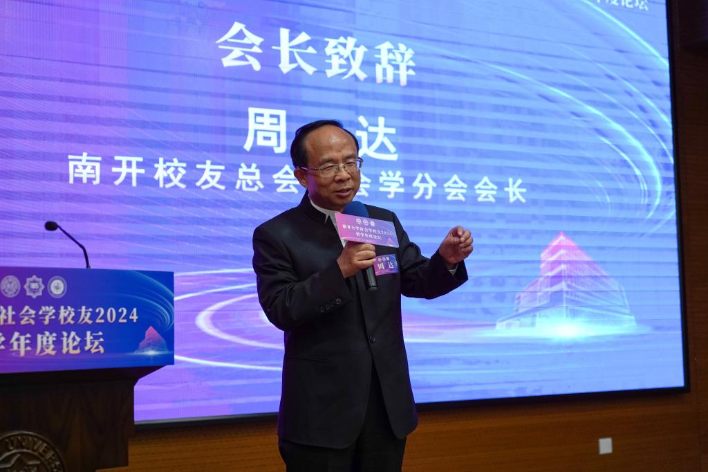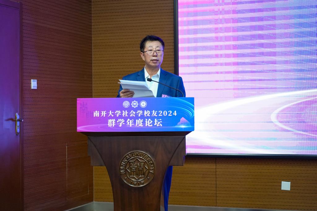 昆仑集团创始人董事长、南开深圳员工会会长、w88win体育官网入口资深校董、南开员工总会副理事长、社会学分会会长、1987级社会学系硕士员工周达致辞。他说,公司和员工分会成立近一年来,开展了大量卓有成效的工作,取得了一系列骄人可喜的成绩。公司和员工分会的成立,是南开社会学人生活中的一件大事,其目的是要促进南开社会学科的发展,走在时代前列。今后分会将进一步完善组织框架,整合全球员工资源,为员工和母校师生之间搭建更多公司产品、研究实践、合作交流的平台。