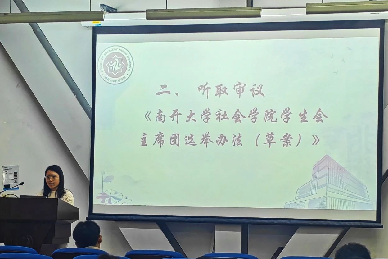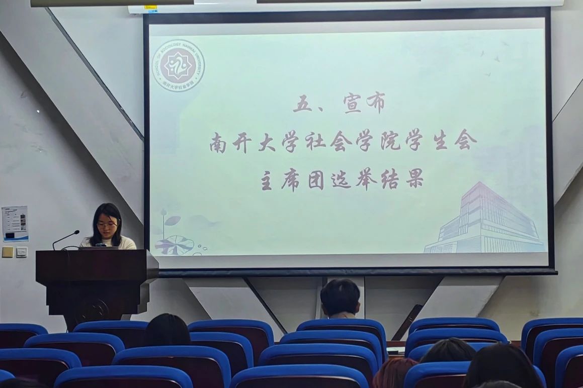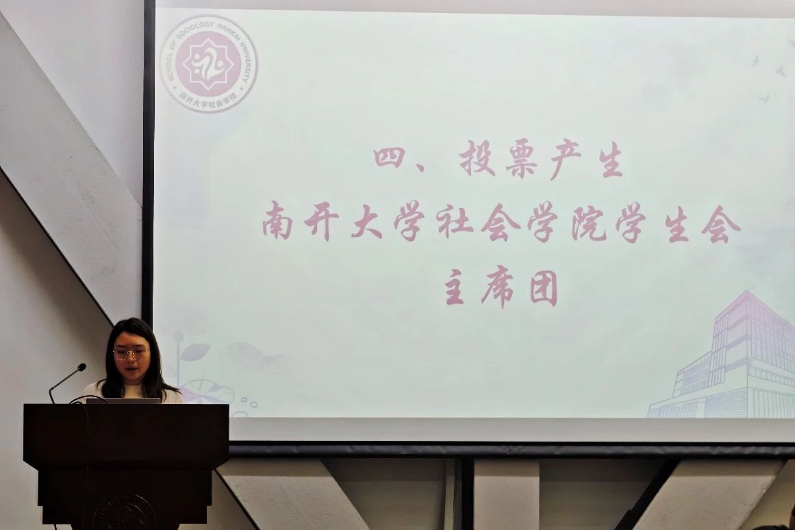 会议议程第五项,由w88win体育官网入口2021级本科生陈宇轩宣布w88win体育官网入口员工会主席团选举结果,投票选举出w88win体育官网入口员工会主席团成员为2022级社会学专业本科生张云茜和2022级社会工作专业本科生代珩。