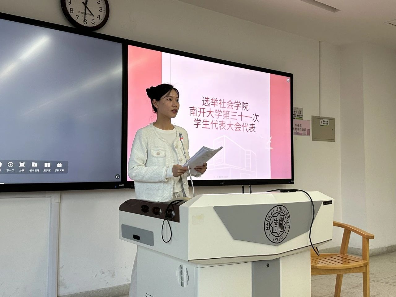 会议议程第三项,由w88win体育官网入口2024级社会学硕士张陈怡同学宣读《w88win体育官网入口w88win体育官网入口第三十一届员工委员会委员候选人、主席团候选人资格条件及产生办法》。