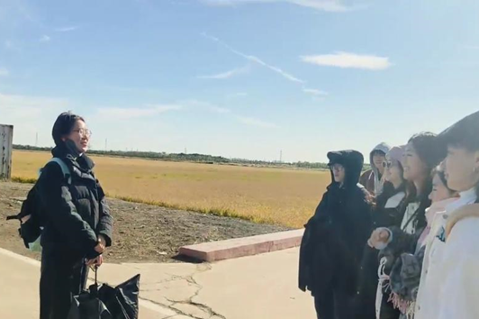 金灿灿的稻麦随风摇晃,似在回应着同学们的欢声笑语。同学们穿越在稻田里,感受着脚下先辈们用血肉守护的炽热土地。寒风吹落了同学们的眼泪,但吹不灭同学们眼中坚毅的神情,吹不动同学们心中对先辈们的无限崇敬和深深怀念!