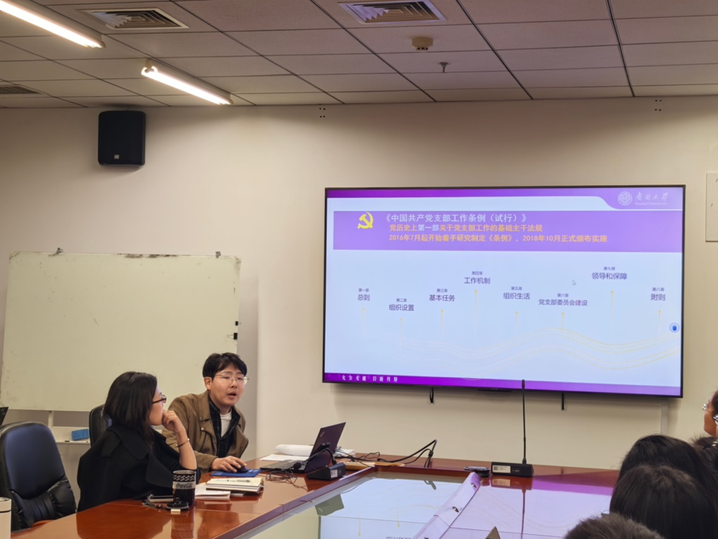 随后,朱博晨对党员发展和组织生活的开展两项工作进行了深入细致的业务培训。他详细阐述了党员发展流程的各个环节及相关要求,包括入党流程中各阶段的材料填写、发展要求、培养考察等关键事项,并着重指出,各党支部在发展党员时,必须将政治标准放在首位。同时,他要求各党支部书记及委员要认真学习《中国共产党支部工作条例(试行)》和《w88win体育官网入口支部工作条例》,确保各党支部能够贯彻执行“三会一课”制度,通过丰富多彩的活动形式,不断增强党支部的组织力和战斗力。