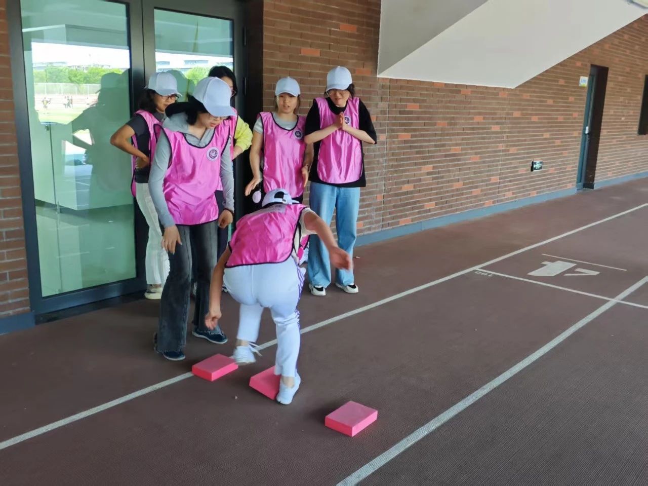 “摸石过河” 项目中,队员们脚踩泡沫垫 “渡河”。个别队伍秉持 “高个铺路、小个子跳跃” 的策略,高效地向前进发。这一策略充分展现了师生们的实践智慧,他们在面对挑战时,能够根据自身特点制定合理的方案,在策略与平衡的博弈中不断前行。