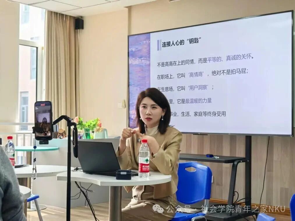 徐毓认为“系统地图”“人心钥匙”“方向罗盘”三大工具是自己实现跨界成长的基石,而这些理念都曾在社会工作专业的课堂上反复被提及。依据“人在情境中”和“系统视角”理念,可以快速摸清规则、抓住关键,为跨界发展或深耕本领域筑牢思维根基;依托深度共情、真诚沟通、建立信任的核心理论,掌握“真正倾听”的艺术,可以很好地感知自己和他人的情绪与需求,恰当地提供情绪价值;而“优势视角”“利他主义”的智慧,可以让人把眼光常常放在资源与潜力之上,形成积极人生底色,即使在困境中也总能看见希望。